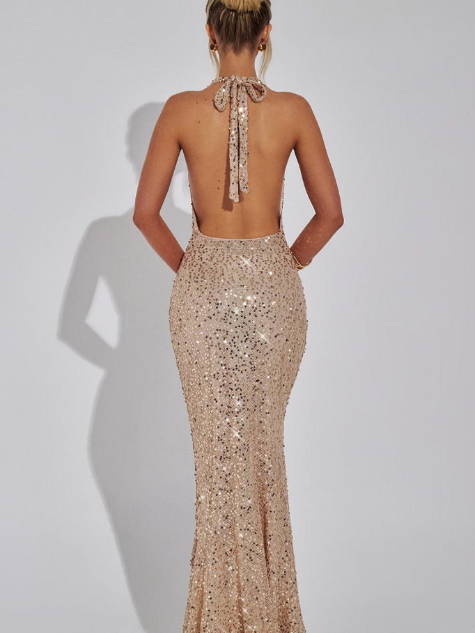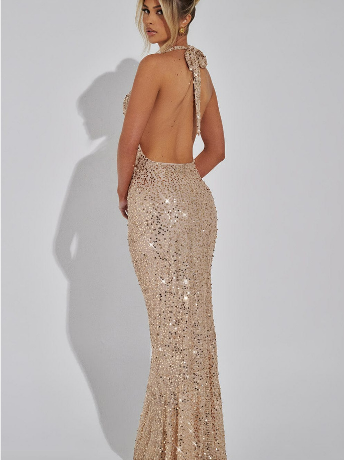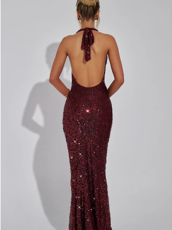 Deep V neckline with halter design for elegant style